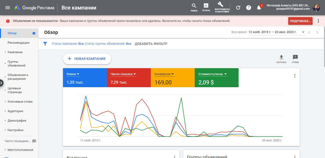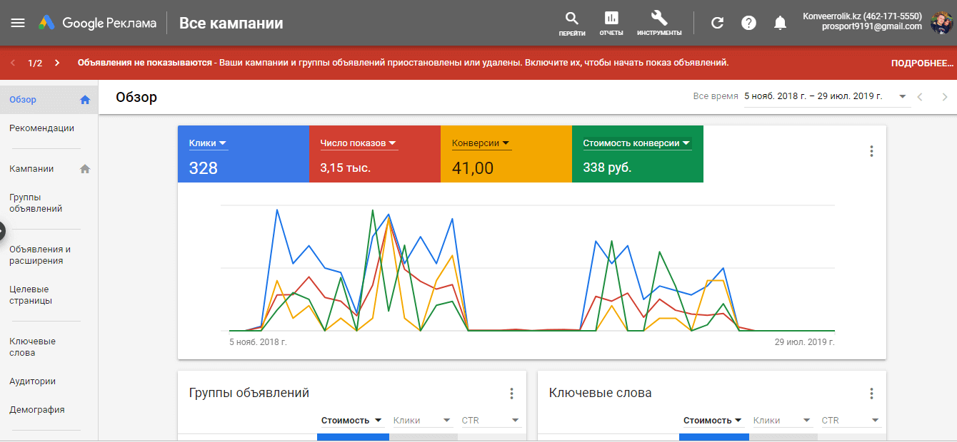 2️ Google ads Рекламную кампанию начали в начале октября,на скрине не тот кабинет,в старом нас заблокировали по непонятным мне причинам